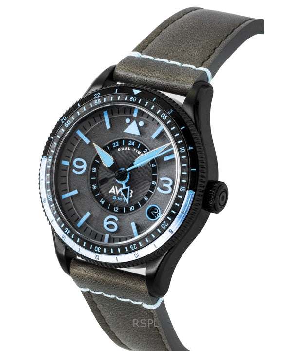 AVI-8 Flyboy Airmaster GMT Leather Strap Grey Dial Automatic AV-4128-05 Men's Watch