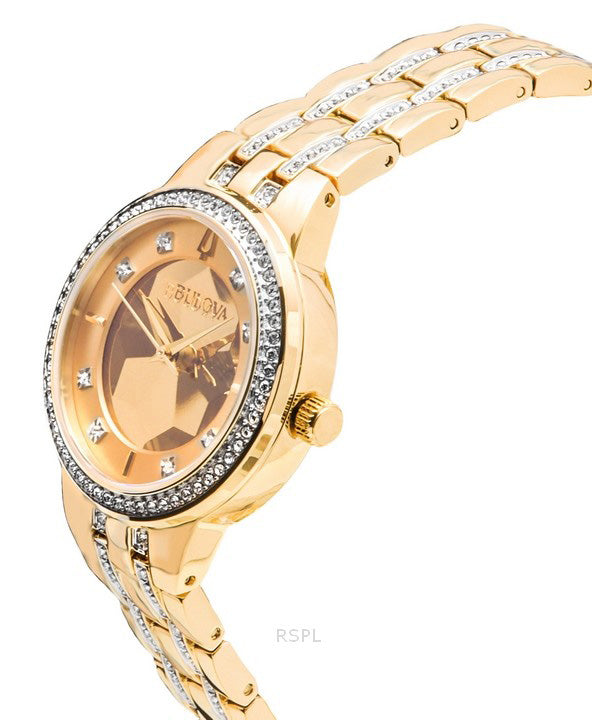Bulova Classic Crystal Phantom Gold Tone Stainless Steel Champagne Dial Quartz 97L176 Women's Watch