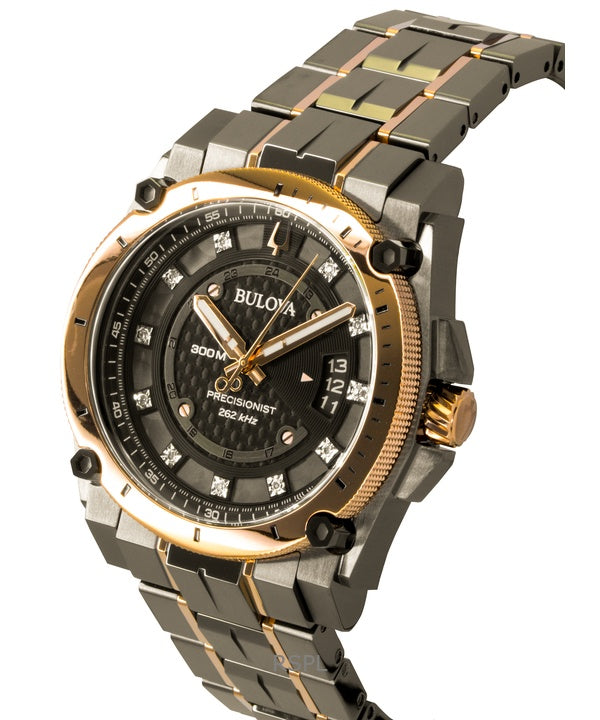 Bulova Precisionist Diamond Stainless Steel Black Dial Quartz Diver's 98D149 300M Men's Watch