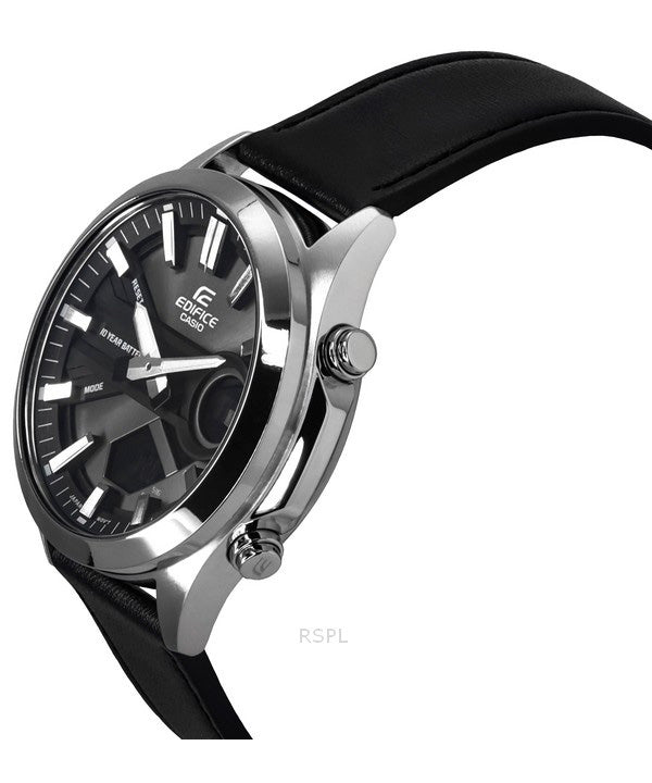 Casio Edifice Analog Digital Leather Strap Grey Dial Quartz EFV-C120L-8A 100M Men's Watch
