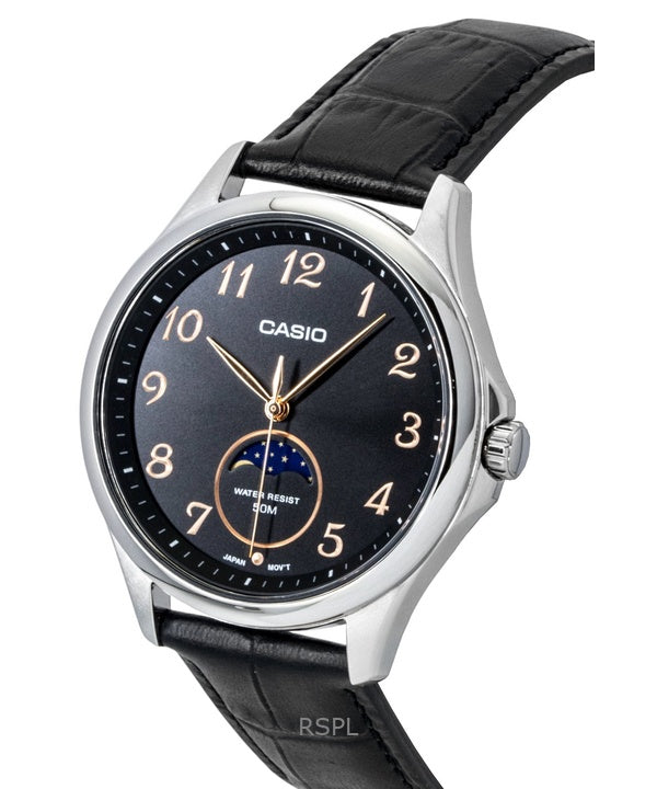 Casio Standard Analog Moon Phase Leather Strap Black Dial Quartz MTP-M110L-1AV Men's Watch