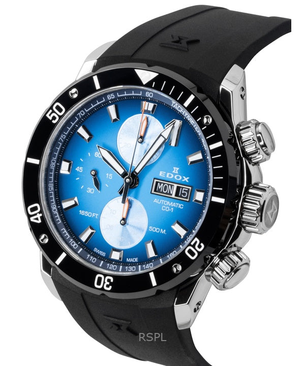 Edox CO-1 Chronograph Rubber Strap Blue Dial Automatic Diver's 01128-3NOCA-BUIDN 500M Men's Watch