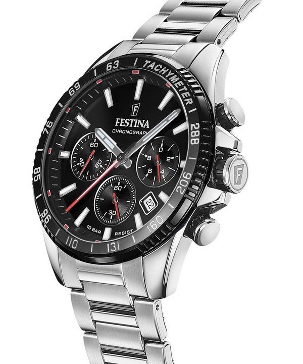 Festina Timeless Chronograph Stainless Steel Black Dial Quartz F20560-6 100M Men's Watch