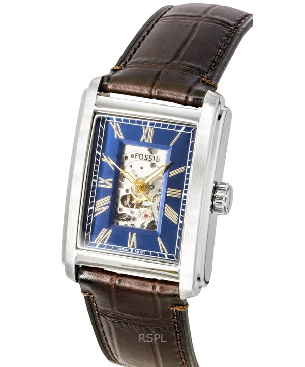 Fossil Carraway Croco Leather Strap Open Heart Blue Dial Automatic ME3273 Men's Watch