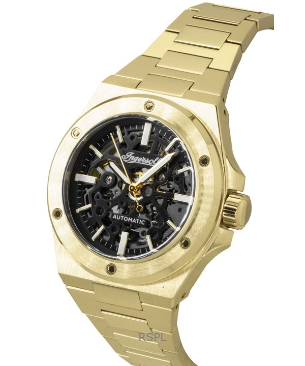 Ingersoll The Baller Gold Tone Stainless Steel Black Skeleton Dial Automatic I15001 Men's Watch