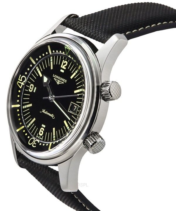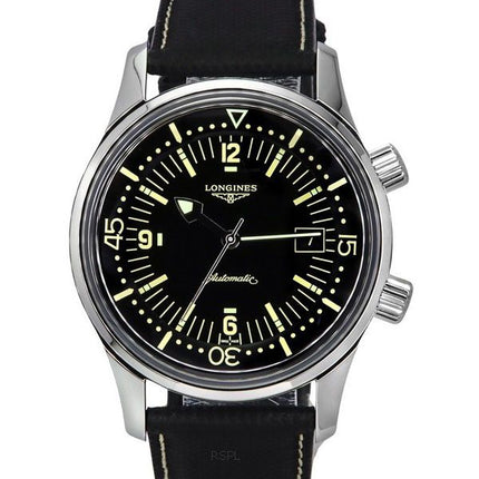 Longines Legend Diver Leather Strap Black Dial Automatic L3.774.4.50.0 300M Men's Watch