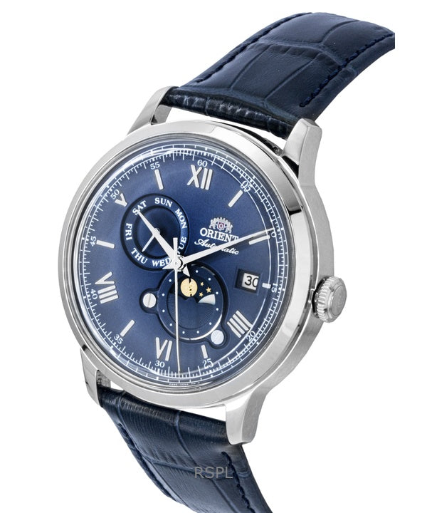 Orient Classic Sun and Moon Leather Strap Navy Blue Dial Automatic RA-AK0806L Men's Watch