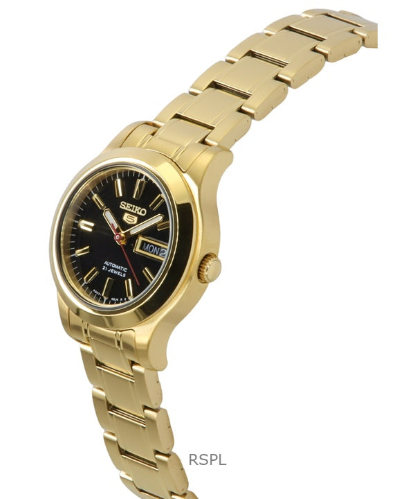 Seiko 5 Classic Gold Tone Stainless Steel Black Dial 21 Jewels Automatic SYMD96K1 Women's Watch