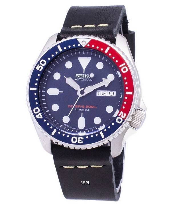 Seiko Automatic SKX009J1-LS14 Diver's 200M Japan Made Black Leather Strap Men's Watch
