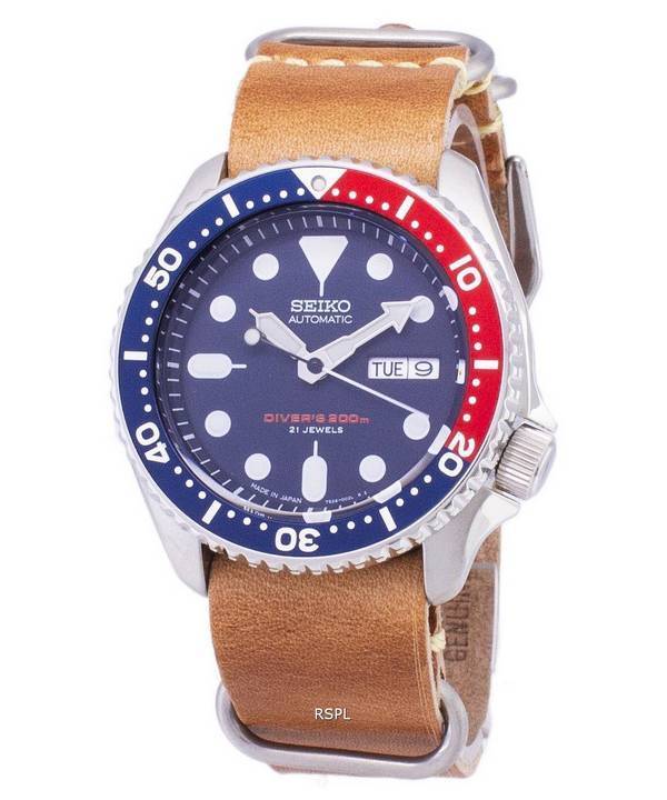 Seiko Automatic SKX009J1-LS18 Diver's 200M Japan Made Brown Leather Strap Men's Watch