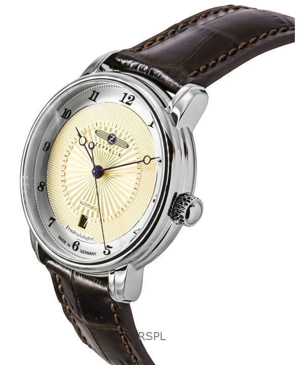 Zeppelin Friedrichshafen Leather Strap Gold Tone Dial Automatic 85565 Men's Watch