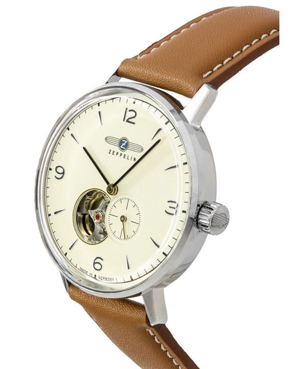 Zeppelin LZ129 Hindenburg Leather Strap Open Heart Beige Dial Automatic 80665N Mens Watch